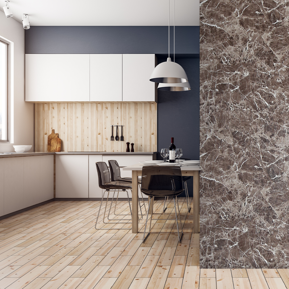 بديل الرخام من الغملاس بتصميمه الرخامي بلون بني دافئ مع عروق بيضاء ناعمة، يمنح المساحات الداخلية لمسة طبيعية أنيقة تجمع بين الفخامة والعملية. يتميز بمقاومة عالية للرطوبة والخدوش، وسهولة في التركيب والتنظيف، ليكون خيارًا عمليًا وجماليًا للمشاريع السكنية والتجارية.